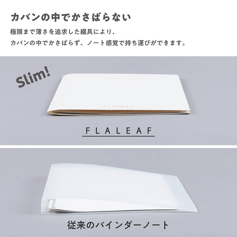 リングの厚みを解消し、薄さを追求したフラットバインダーノートです。