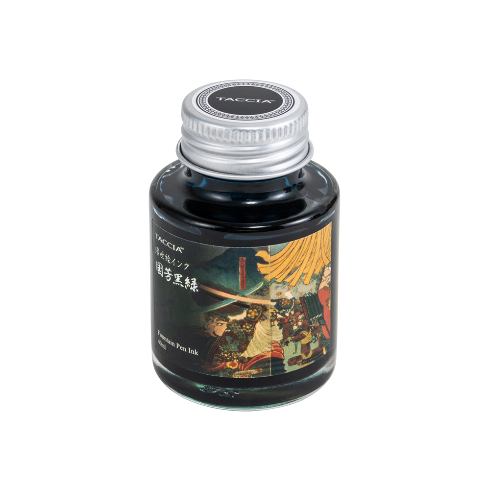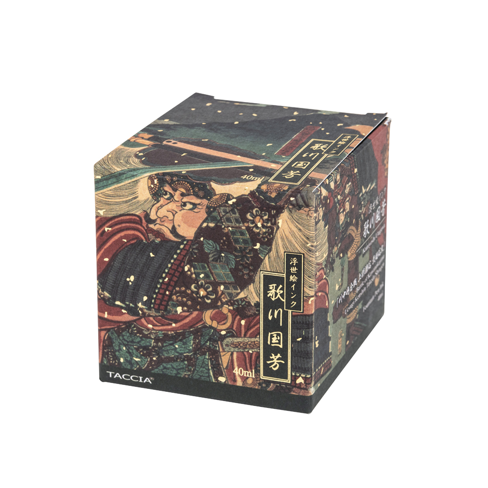 「浮世絵インク 歌川国芳」は、浮世絵作品から色の着想を得てカラー調色した万年筆用・水性染料インクシリーズです。文具ソムリエの石津 大氏がプロデュース、カラーコンサルタントの松本 英恵氏がカラー監修を行っています。 インクは安全性の高い原材料を使用し、国内で開発・製造しています。
