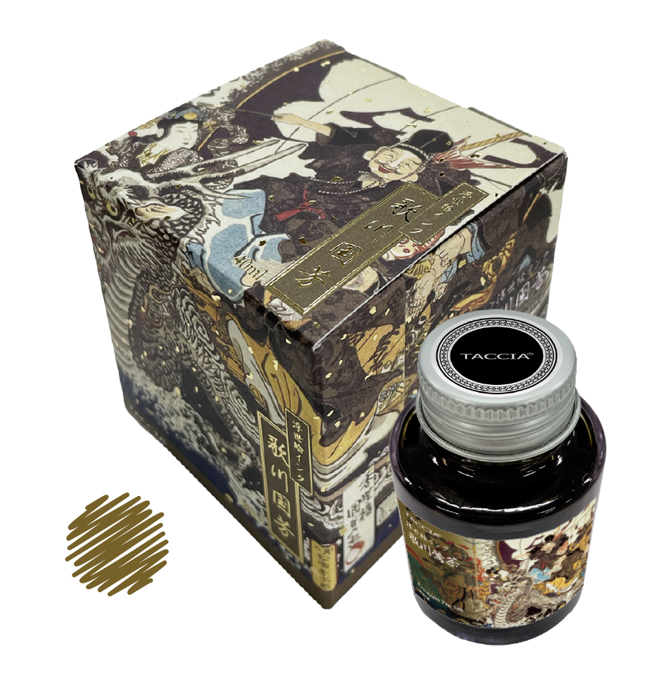 「浮世絵インク 歌川国芳」は、浮世絵作品から色の着想を得てカラー調色した万年筆用・水性染料インクシリーズです。文具ソムリエの石津 大氏がプロデュース、カラーコンサルタントの松本 英恵氏がカラー監修を行っています。 インクは安全性の高い原材料を使用し、国内で開発・製造しています。