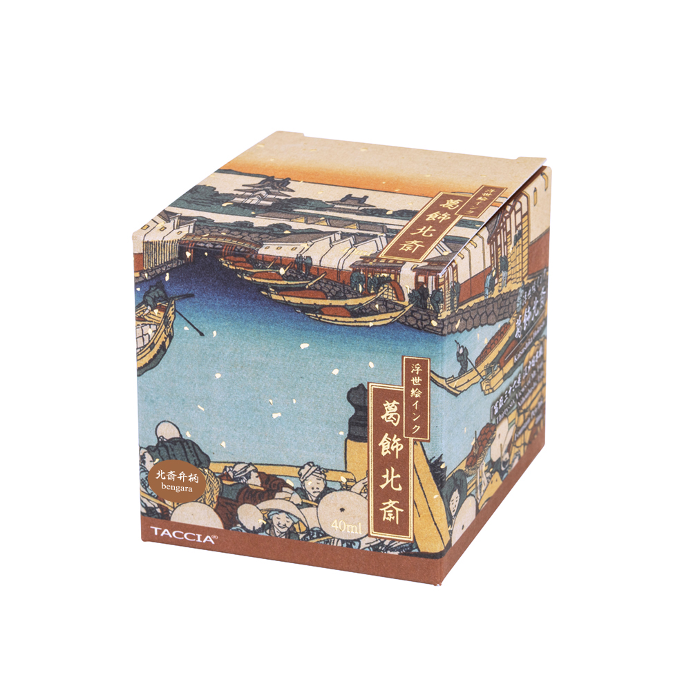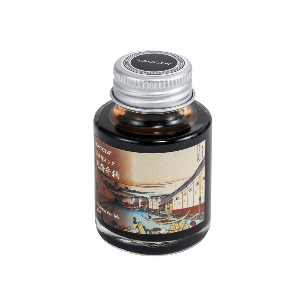 「浮世絵インク 葛飾北斎」は、浮世絵作品から色の着想を得てカラー調色した万年筆用・水性染料インクシリーズです。文具ソムリエの石津 大氏がプロデュース、カラーコンサルタントの松本 英恵氏がカラー監修を行っています。 インクは安全性の高い原材料を使用し、国内で開発・製造しています。