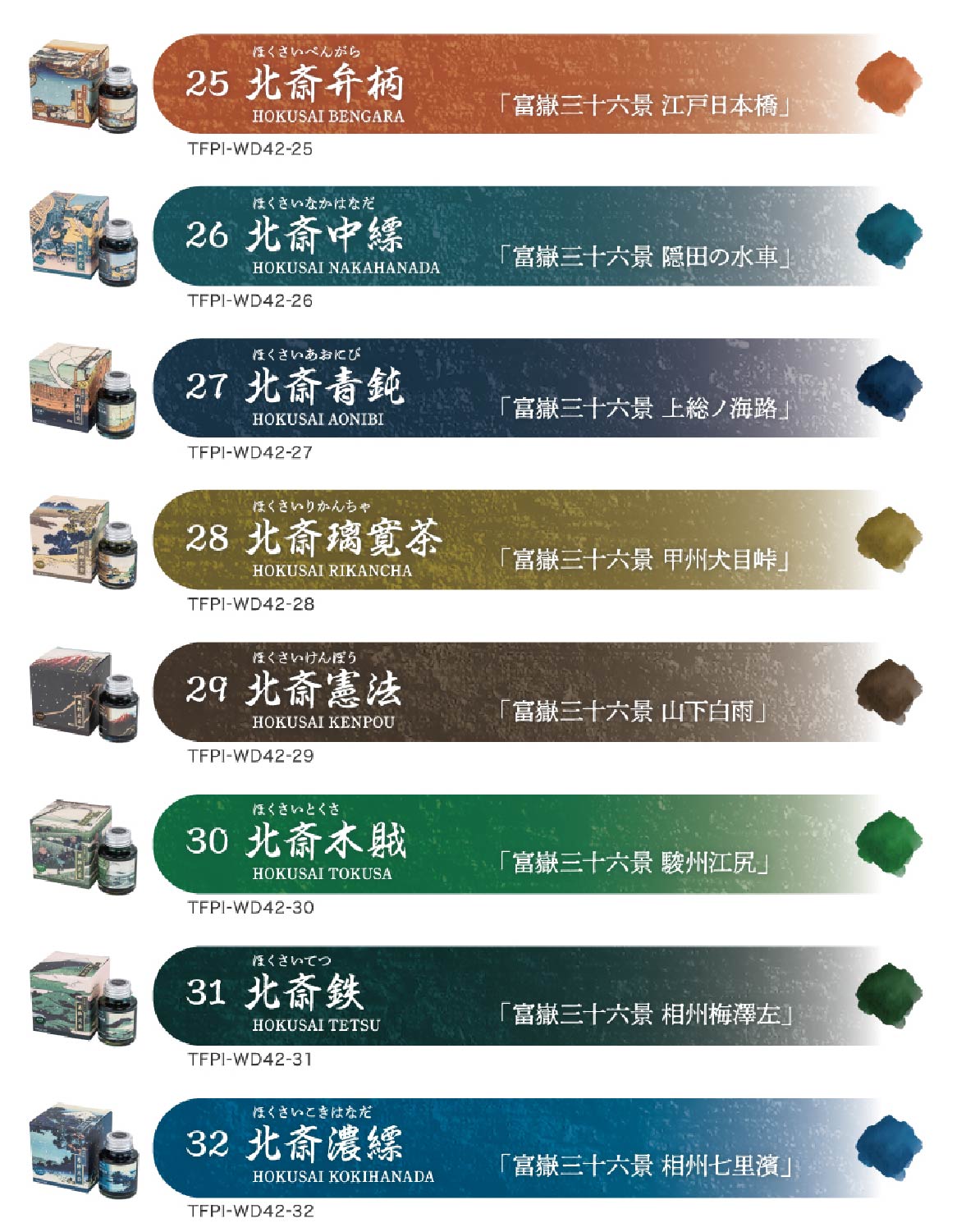 ・浮世絵をイメージしてカラー調色した万年筆用・水性染料インクです。