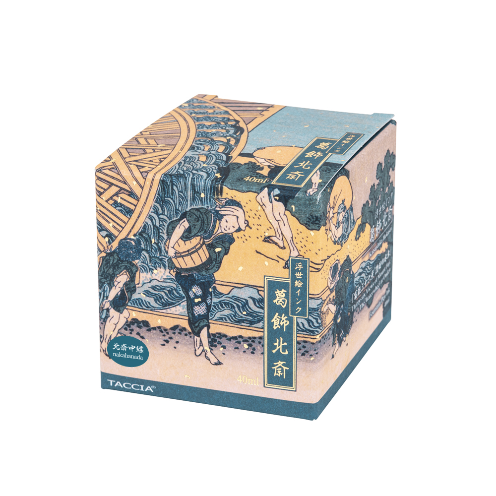 「浮世絵インク 葛飾北斎」は、浮世絵作品から色の着想を得てカラー調色した万年筆用・水性染料インクシリーズです。文具ソムリエの石津 大氏がプロデュース、カラーコンサルタントの松本 英恵氏がカラー監修を行っています。 インクは安全性の高い原材料を使用し、国内で開発・製造しています。