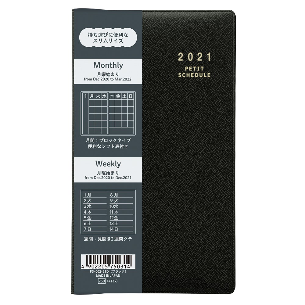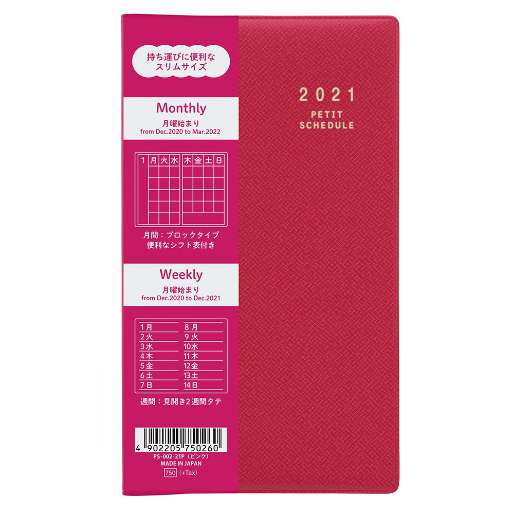 「プチスケジュール」は、ヨコ90×タテ154mmのコンパクトなダイアリーです。