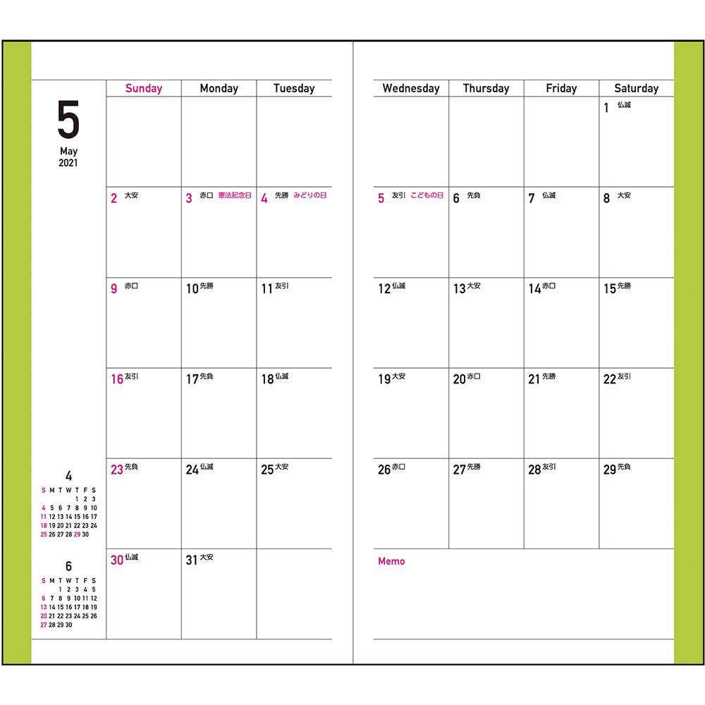 カレンダーとリンクさせるのに便利な、日曜始まりタイプです。