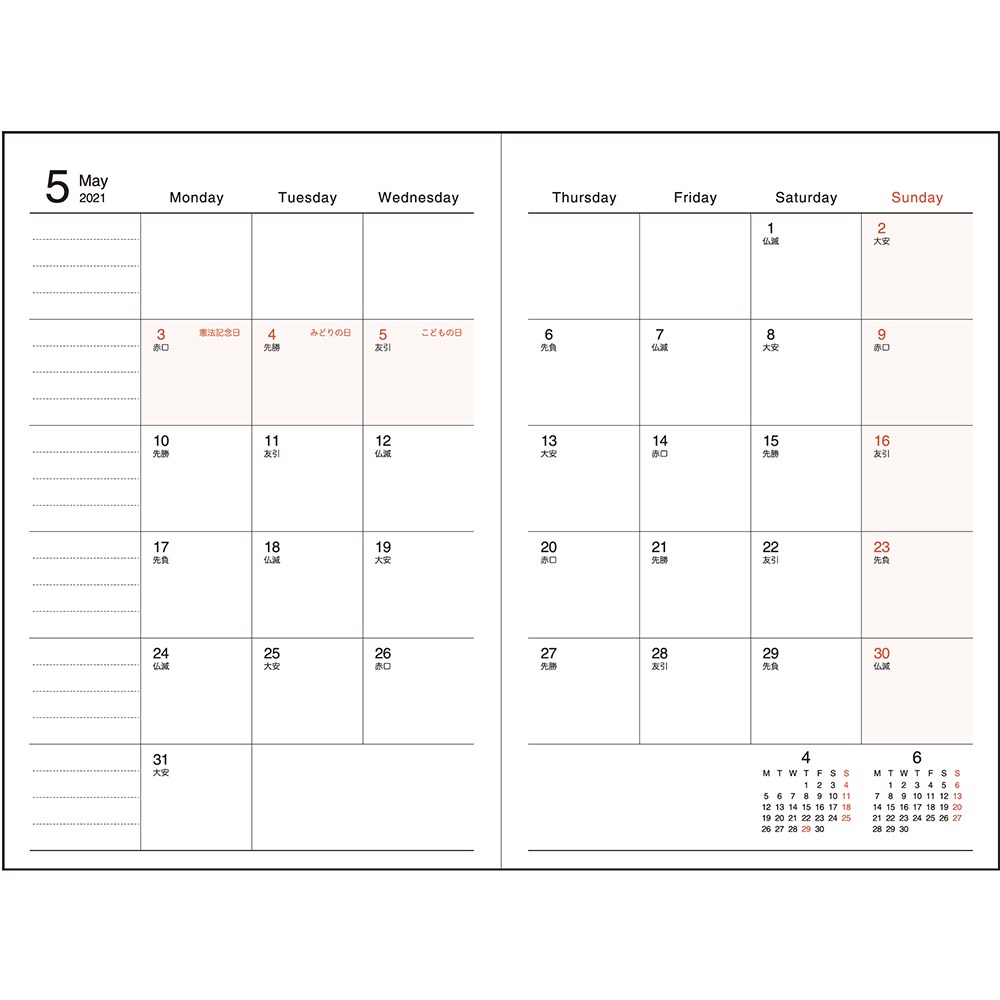 A6変形サイズ。本文はマンスリーとノートだけのシンプルな手帳です。