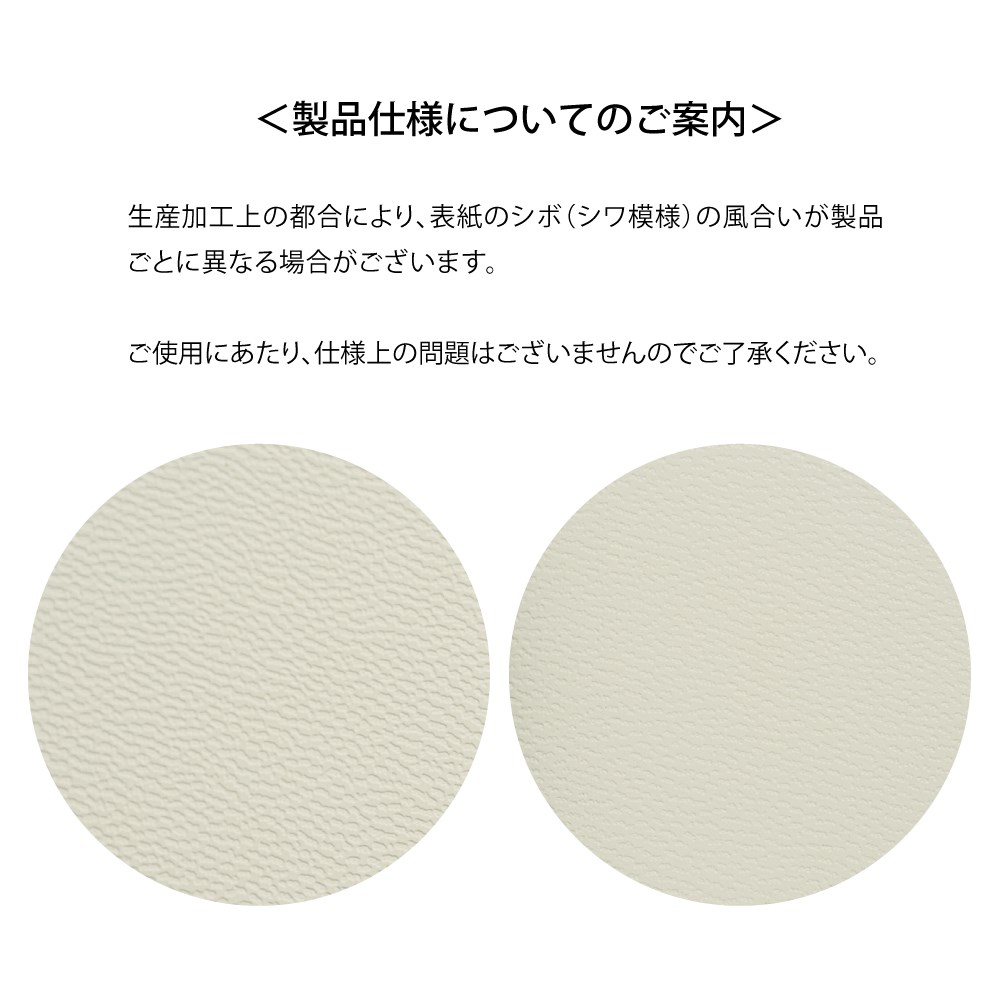 生産加工上の都合により、表紙のシボ(シワ模様)の風合いが製品ごとに異なる場合がございます。