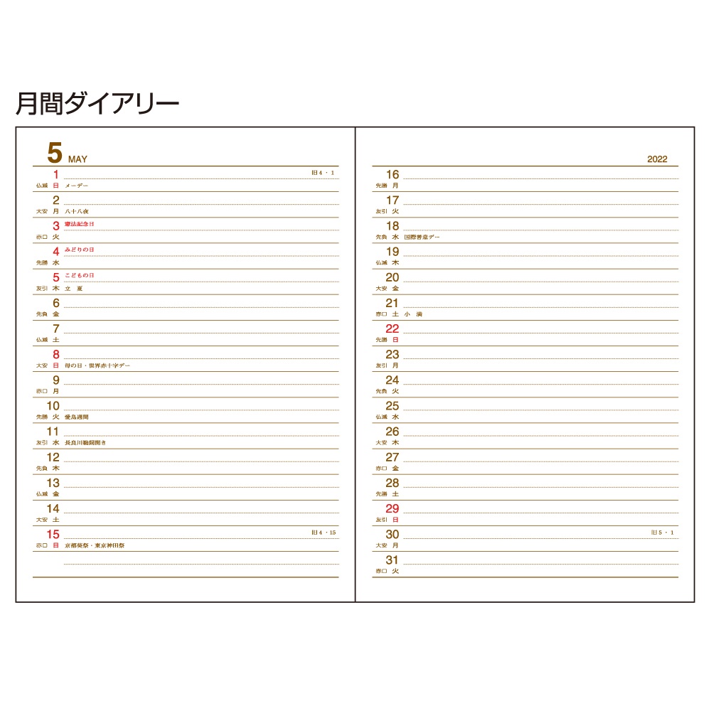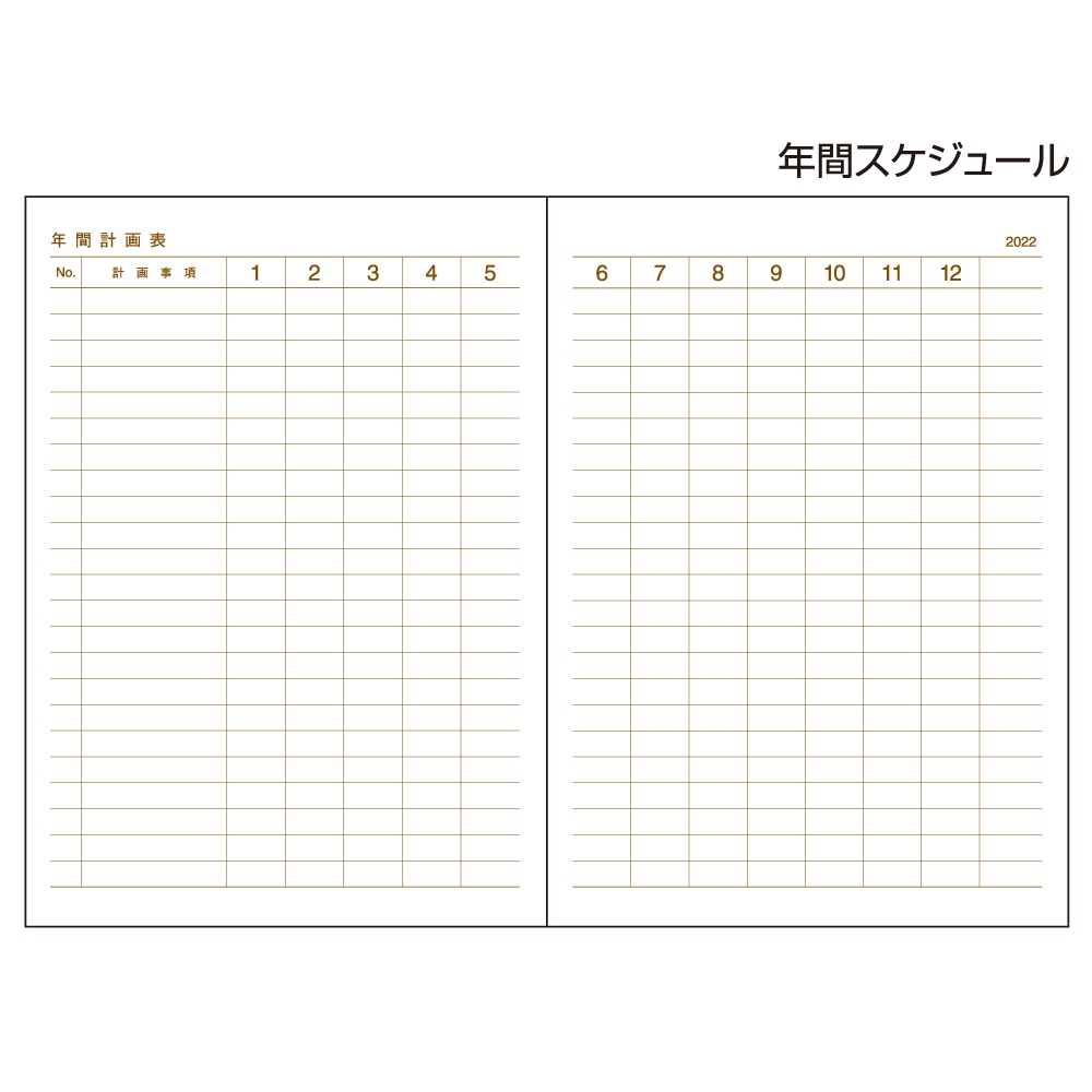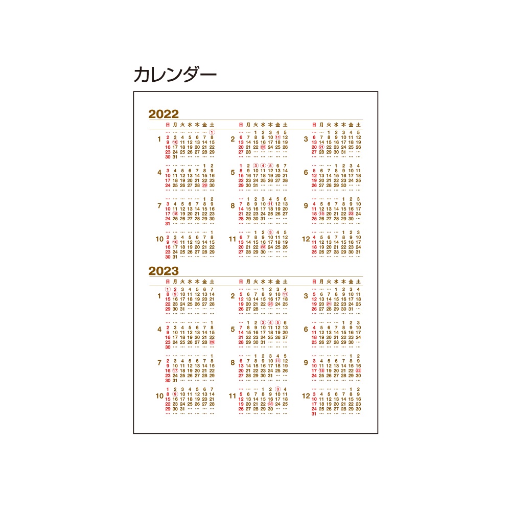 | 内容 | カレンダー、年間スケジュール、月間スケジュール(翌年4月まで)、ノート245頁、方眼ノート12頁、アドレス、おぼえ |