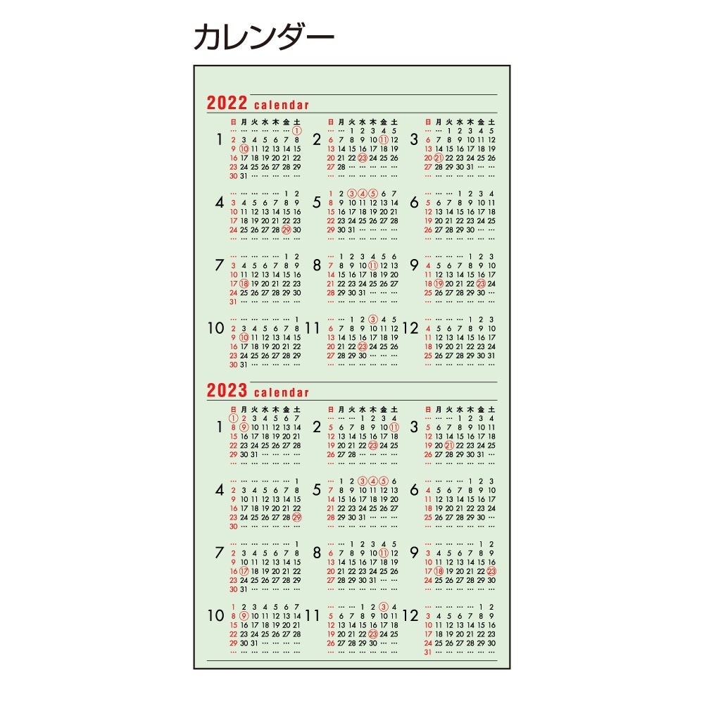 | 内容 | カレンダー、年間スケジュール、月間スケジュール(翌年4月まで)、週間スケジュール、ノート、アドレス、おぼえ |