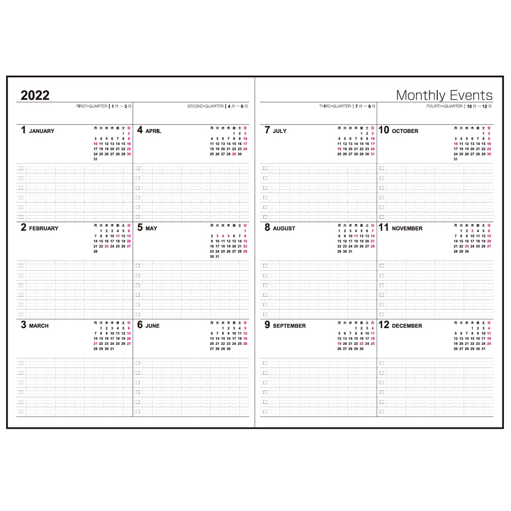 - ミニカレンダー付きイベントページを巻頭に掲載し、一年間のスケジュールを視覚的にまとめられます。
