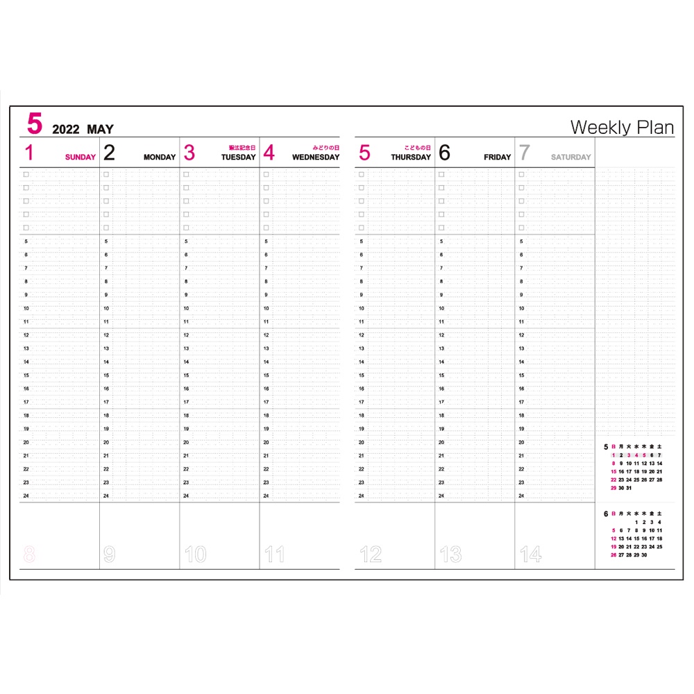 ウィークリー見開き1週間+翌週表示!! カレンダーと同じ日曜始まり!! ロジカルノートタイプのスケジュール帳