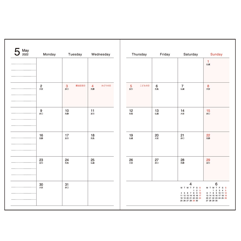 A6変形サイズ。本文はマンスリーとノートだけのシンプルな手帳です。