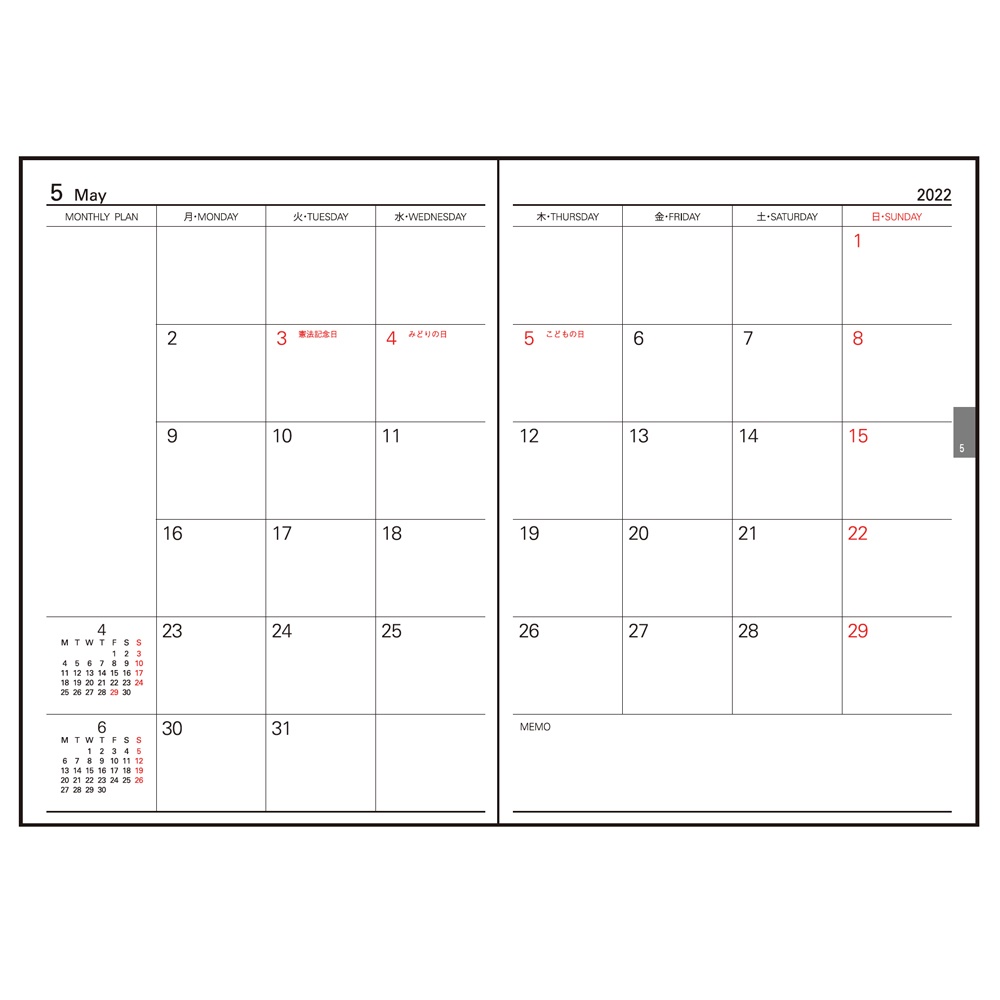 ビジネスダイアリー2022 月別レフト/A6/ブラック