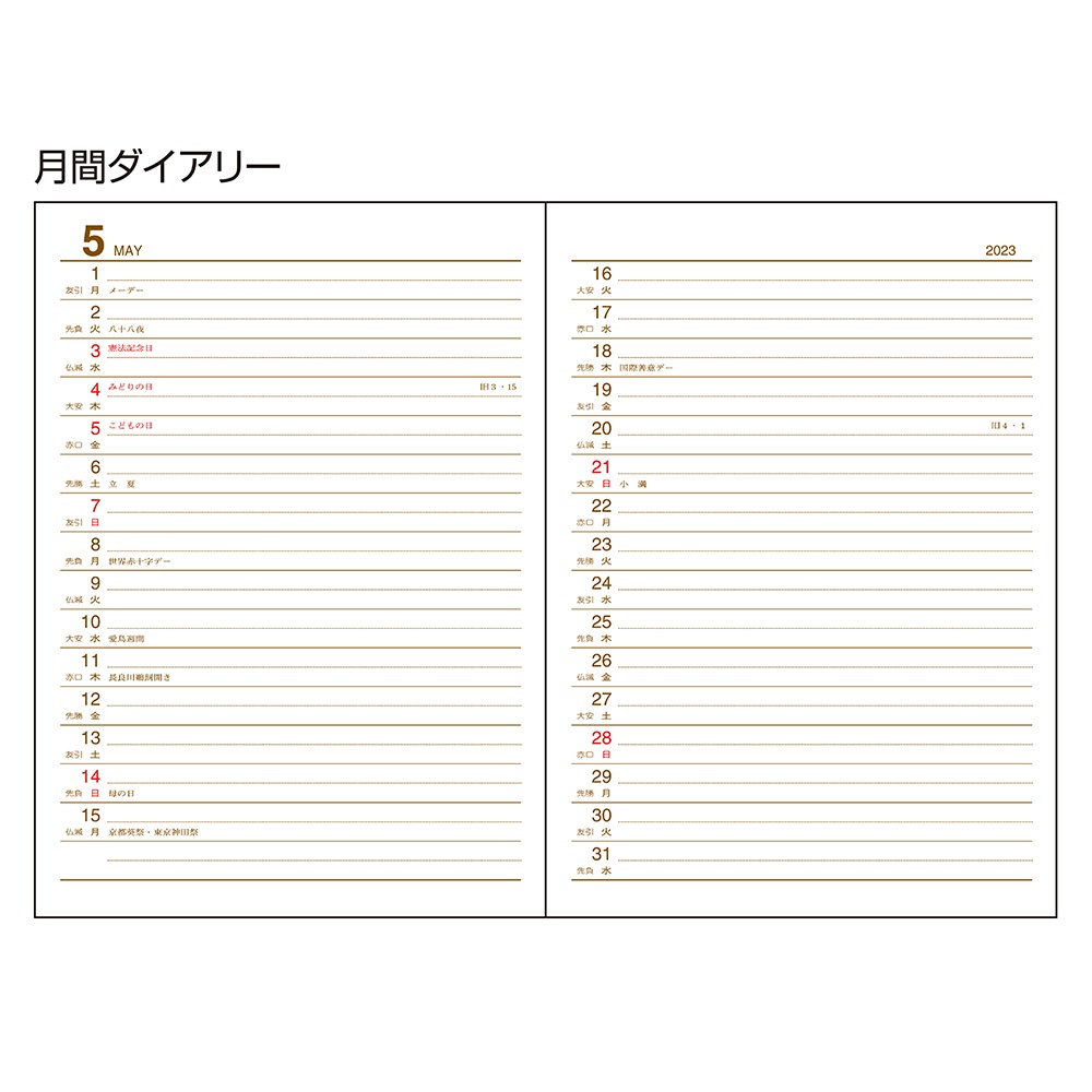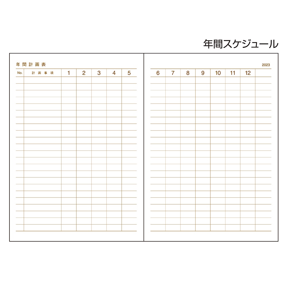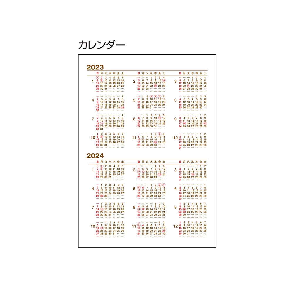 | 内容 | カレンダー、年間スケジュール、月間スケジュール(翌年4月まで)、ノート245頁、方眼ノート12頁、アドレス、おぼえ |