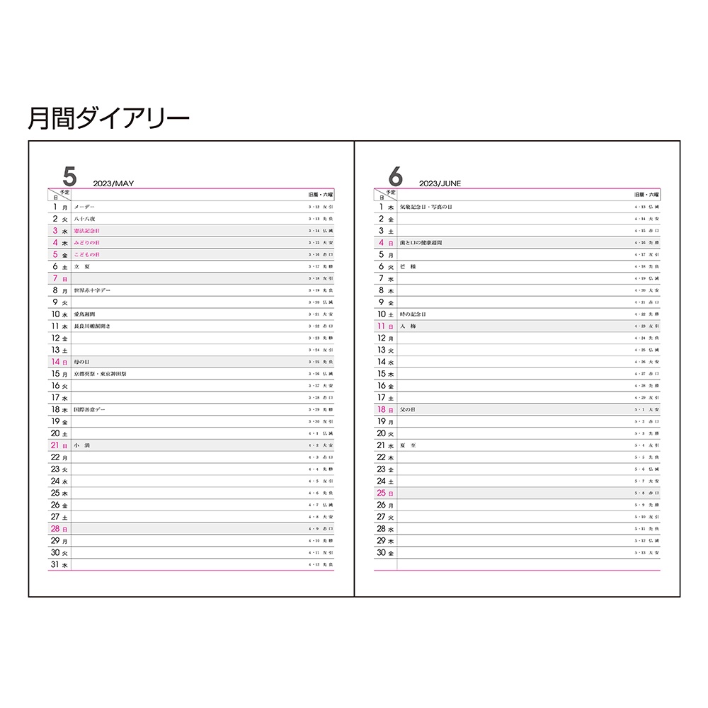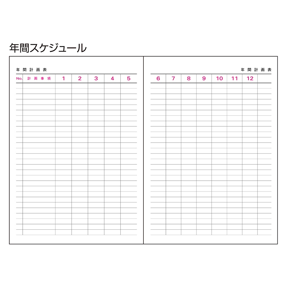 | 内容 | カレンダー、年間スケジュール、月間スケジュール(翌年4月まで)、週間スケジュール、アドレス、おぼえ |