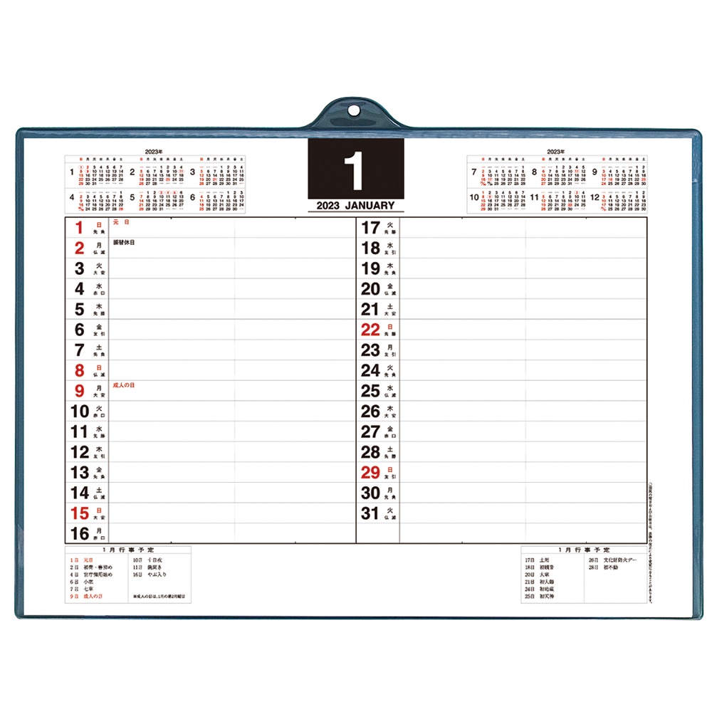 | 内容 | 見開き1ヵ月のスケジュール(1枚表裏で2ヵ月分)吊り下げフック付 |