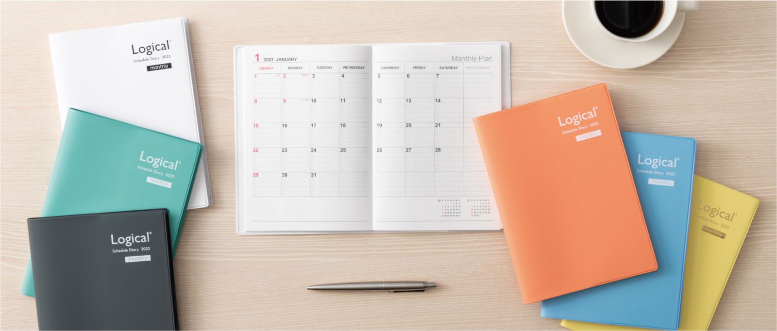 2023年版は、新発売の「ロジカルダイアリー 月間ノートタイプ B6横型」「ロジカルダイアリー カバータイプ マンスリーB6」に加え、ご好評いただいている「月間ノートタイプ」「週間バーチカルタイプ」「見開き2週間タイプ」など、豊富な計101品番を展開しています。