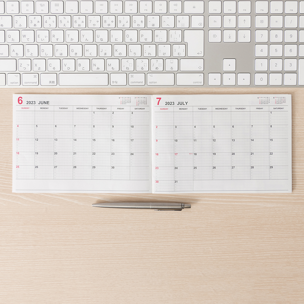 - 見開き2か月分の予定が把握できる月間ブロックタイプ