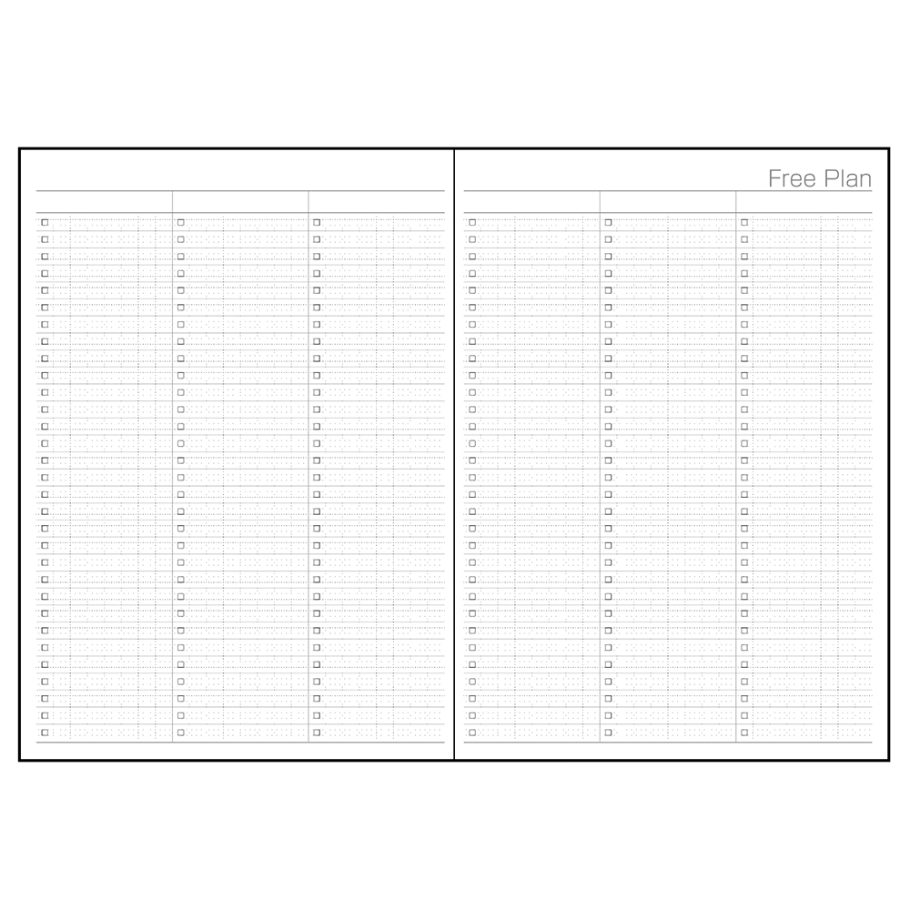 | 収録内容 | 年間カレンダー、イヤープラン、イベントページ、 月間スケジュール(2022年12月〜2024年3月、ブロック式、日曜始まり) フリープラン、ノートページ(ロジカル罫) |
