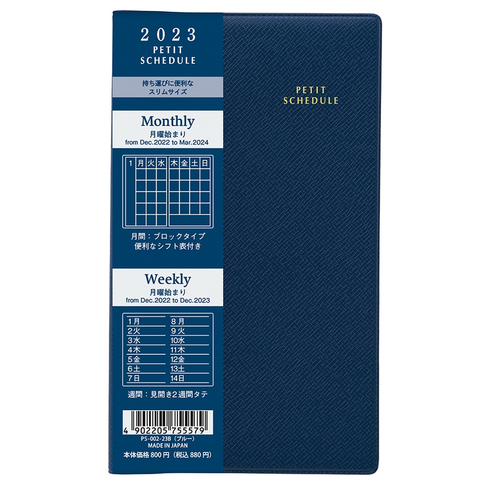 | 収録内容 | 年間カレンダー、イヤープラン、 月間スケジュール(2022年12月〜2024年3月、ブロック式、日曜始まり) ロジカル方眼罫ノート |