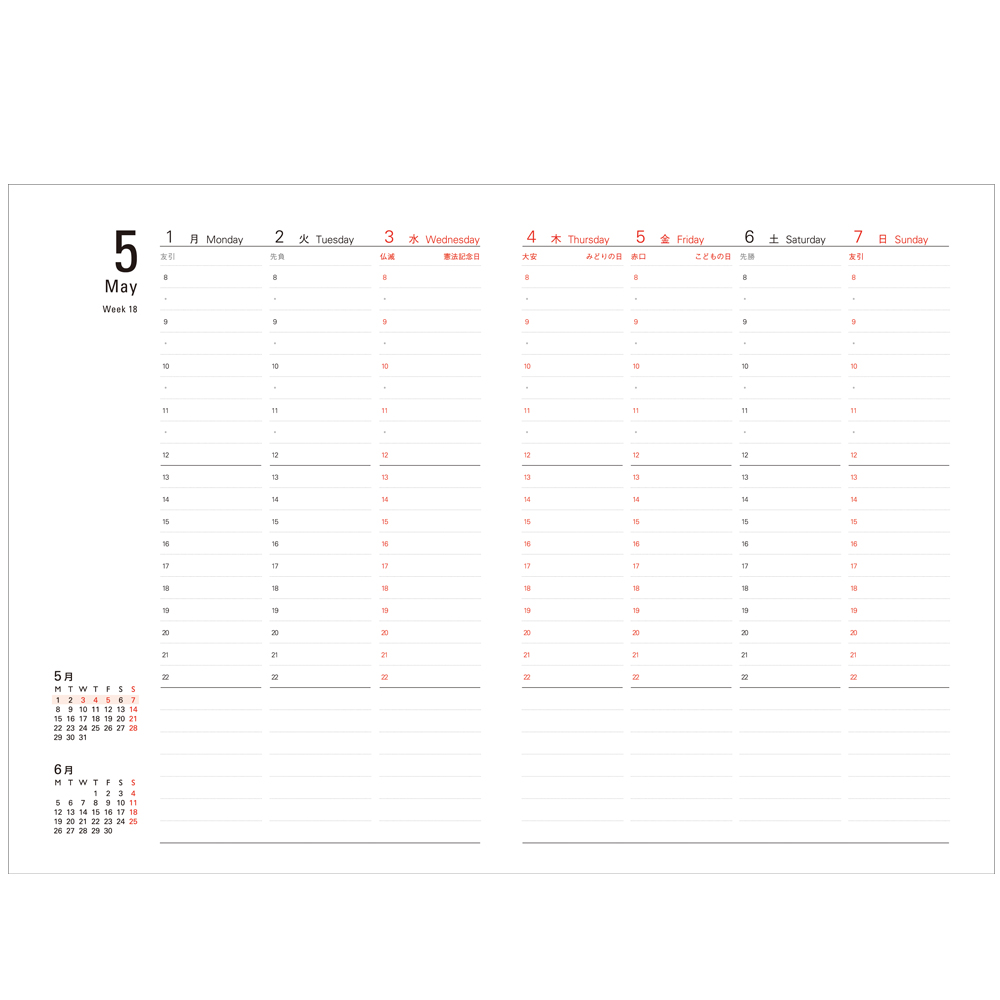 時間単位でスケジュールを管理。A5サイズのバーチカルタイプ