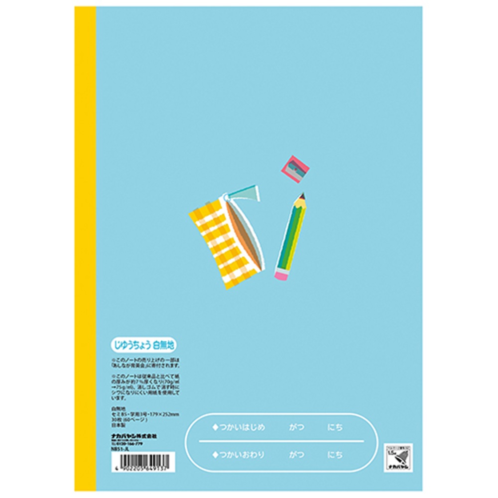 濃い鉛筆や筆記具を使用する傾向がある小学校・低学年向けノートえんぴつで書いた文字を消しゴムで消す「消し能力」が当社従来品より約5%アップベルマーク運動参加商品このノートの売り上げの一部は「あしなが育英会」に寄付されます。