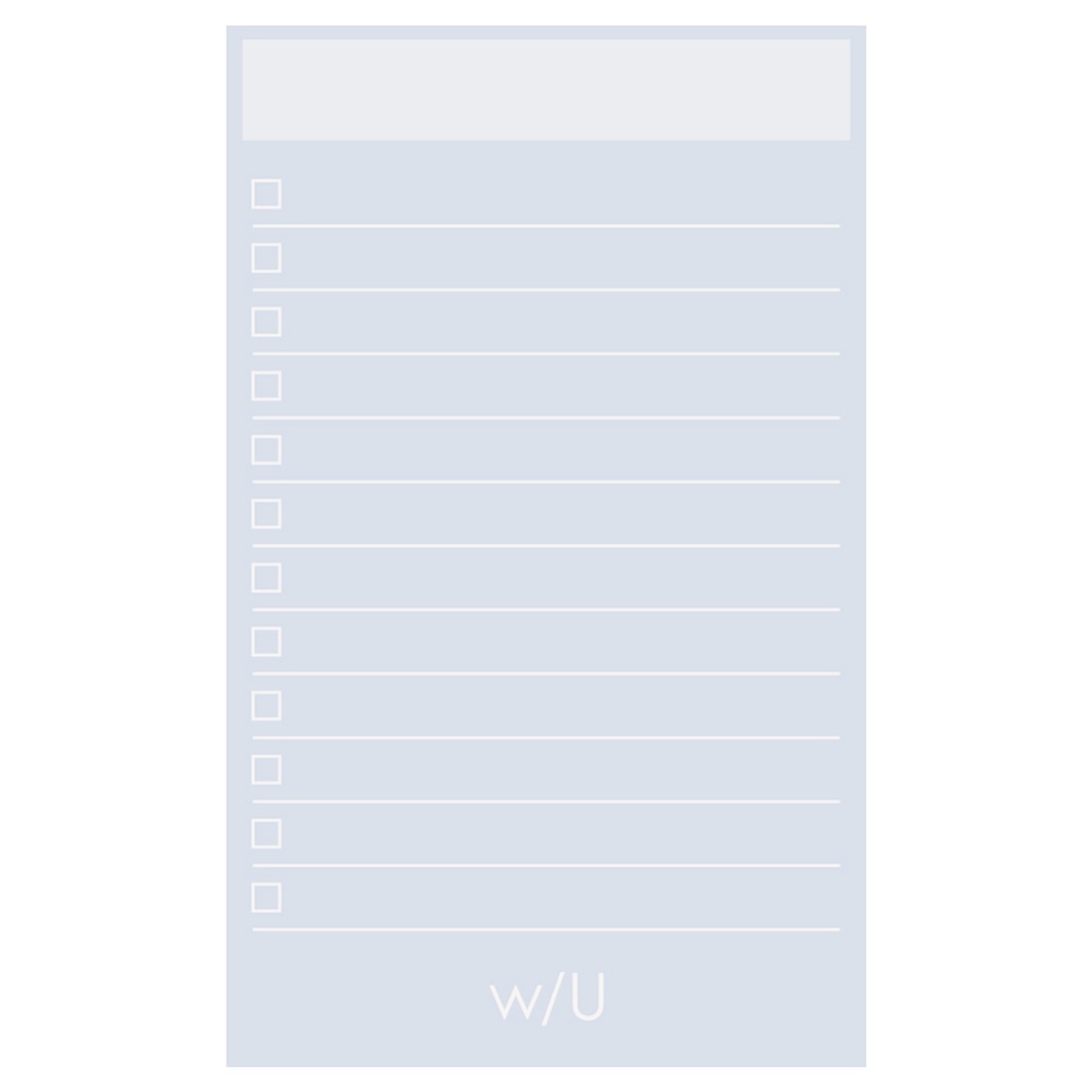 製品名/品番 w/U A7ブロックメモ / WU-A702 メーカー希望小売価格 270円(税込297円) ラインアップ シルキーグレー(GY)、シェルピンク(P)、パウダーブルー(B)、ピスタチオグリーン(G)、スモーキーブラック(D) 本体寸法/重量 ヨコ74×タテ105×厚み10.5mm / 約63g 材質 表紙:コートボール紙 / 本文:上質紙100枚