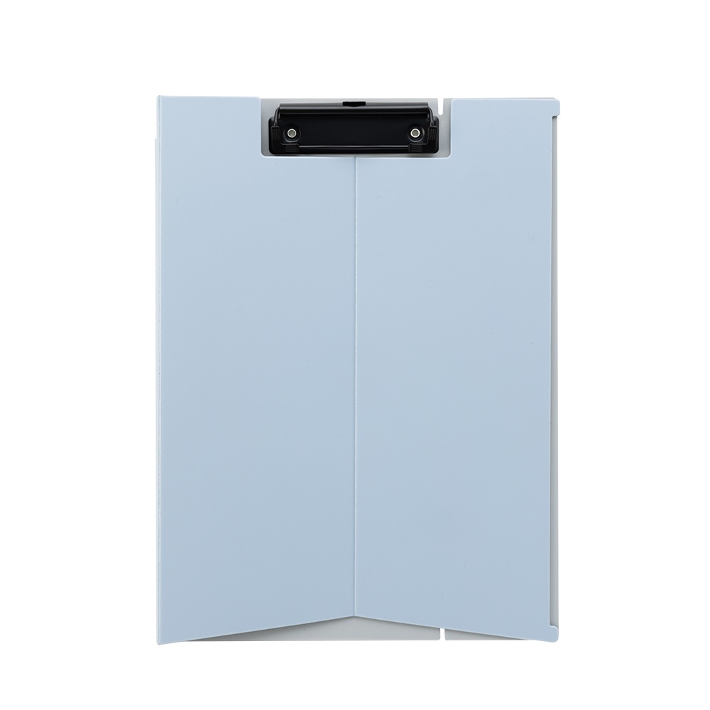 - タテヨコ好きな向きでスタンドできるクリップボードです。カバーを折り返して切り込みにはめるだけで書見台になり、PCと同じ目線で入力作業ができます。ペンを差せるくぼみ付きで、持ち運びにも便利です。