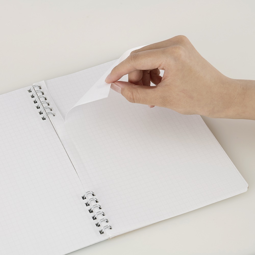 筆記時に手が当たりにくいセパレート式Wリングタイプ。