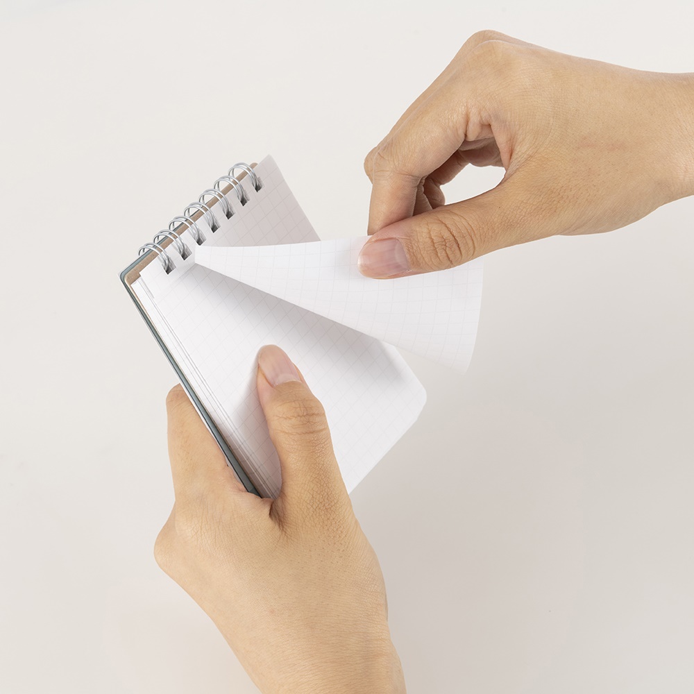 筆記時に手が当たりにくいセパレート式Wリングタイプ。