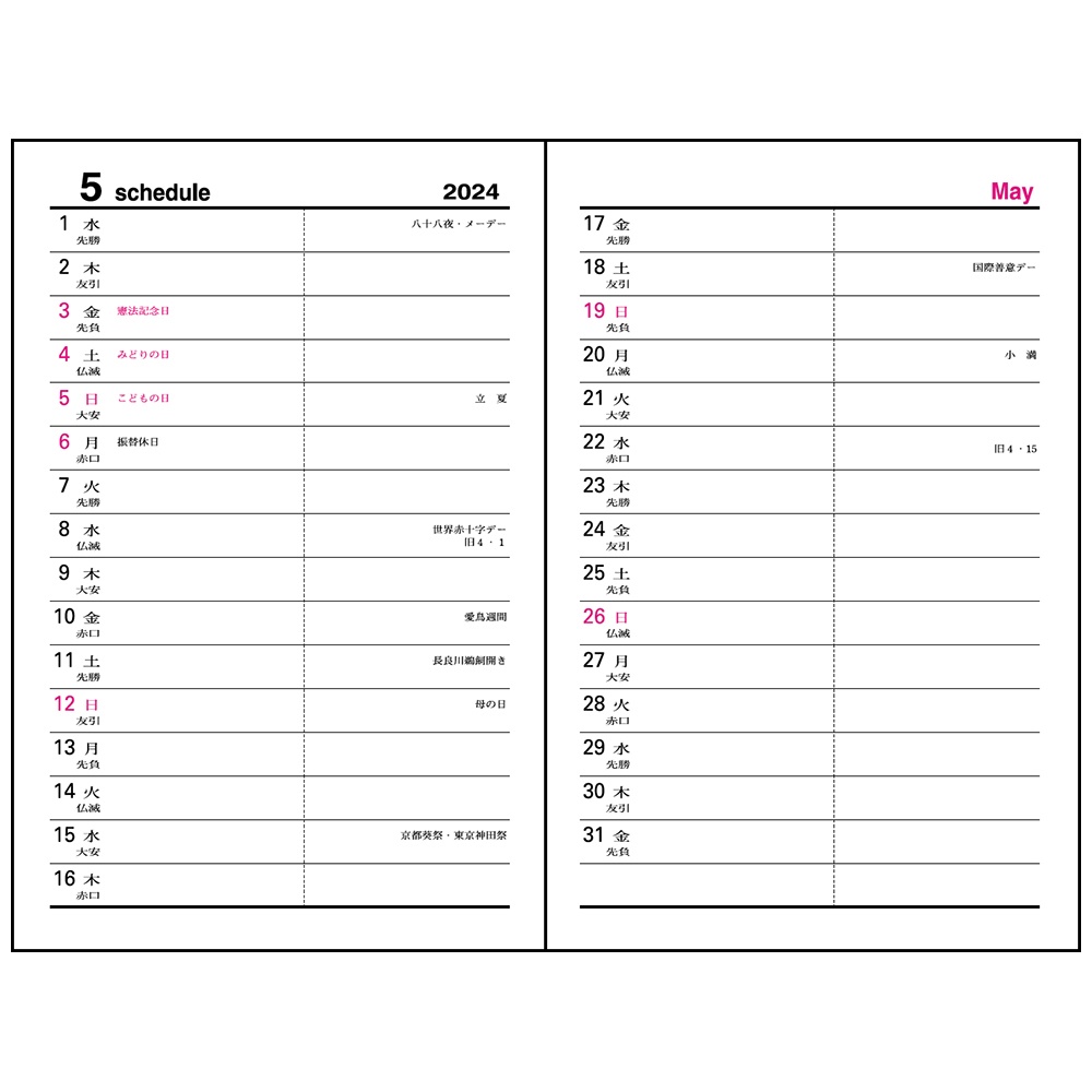 | 内容 | カレンダー、年間スケジュール、月間スケジュール(翌年4月まで)、週間スケジュール、ノート、別冊アドレス、おぼえ |