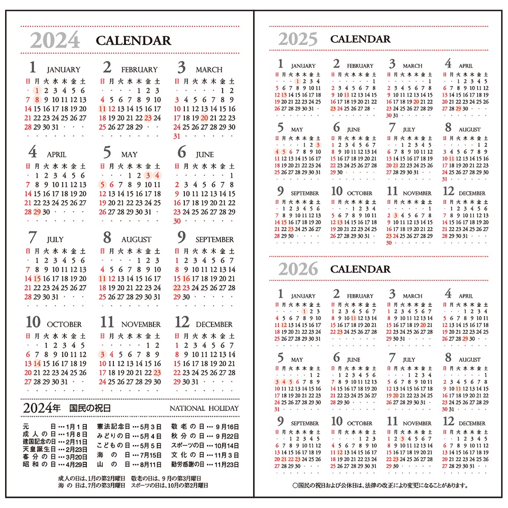 | 内容 | カレンダー、年間スケジュール、月間スケジュール(翌年4月まで)、週間スケジュール、ノート、別冊アドレス、おぼえ |