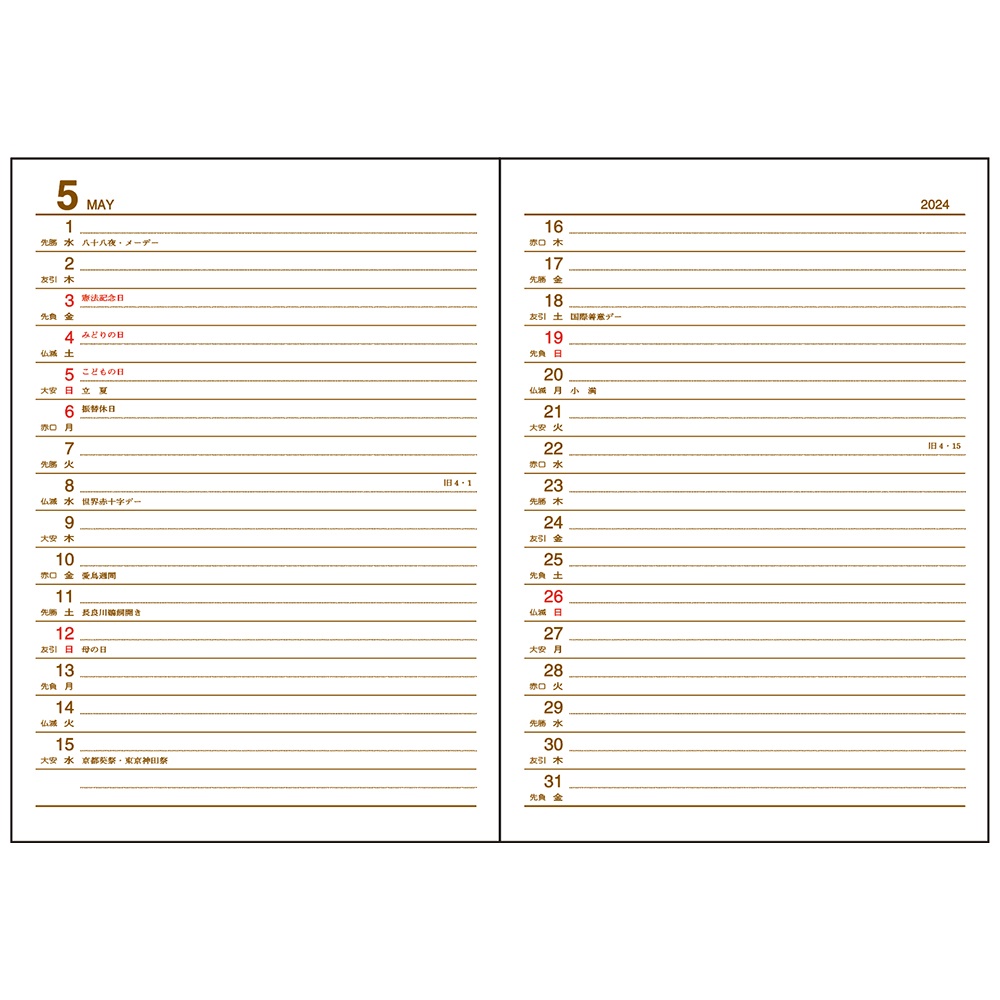 | 内容 | カレンダー、年間スケジュール、月間スケジュール(翌年4月まで)、ノート245頁、方眼ノート12頁、アドレス、おぼえ |