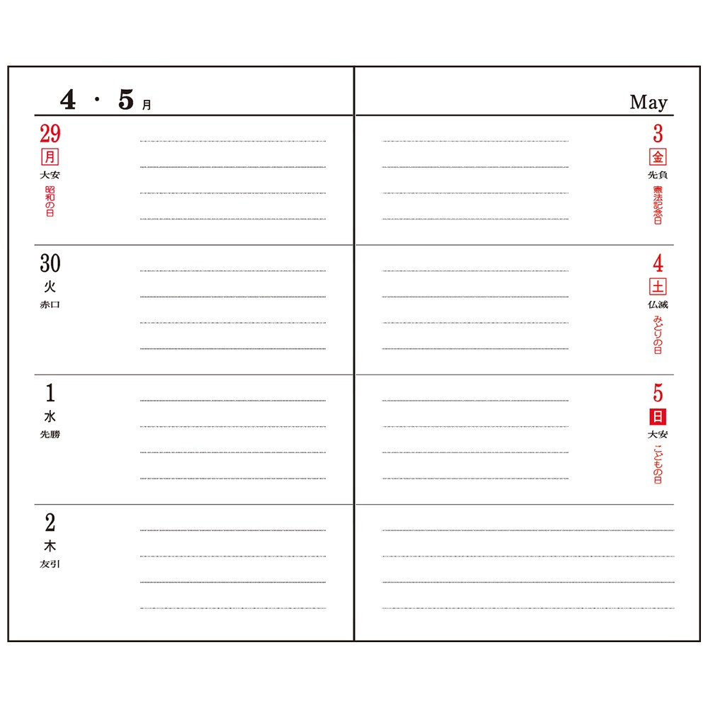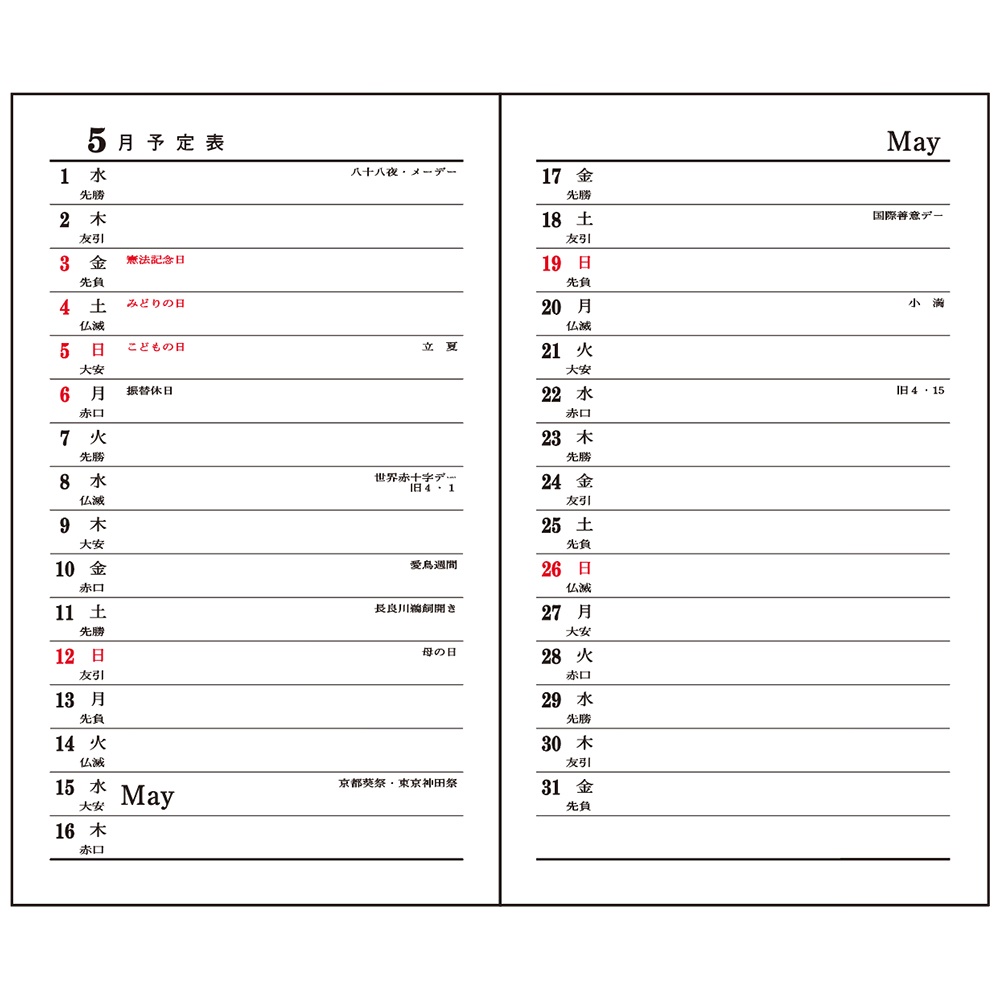 | 内容 | カレンダー、月間スケジュール(翌年4月まで)、週間スケジュール、ノート、アドレス、おぼえ、手帳用鉛筆付 |