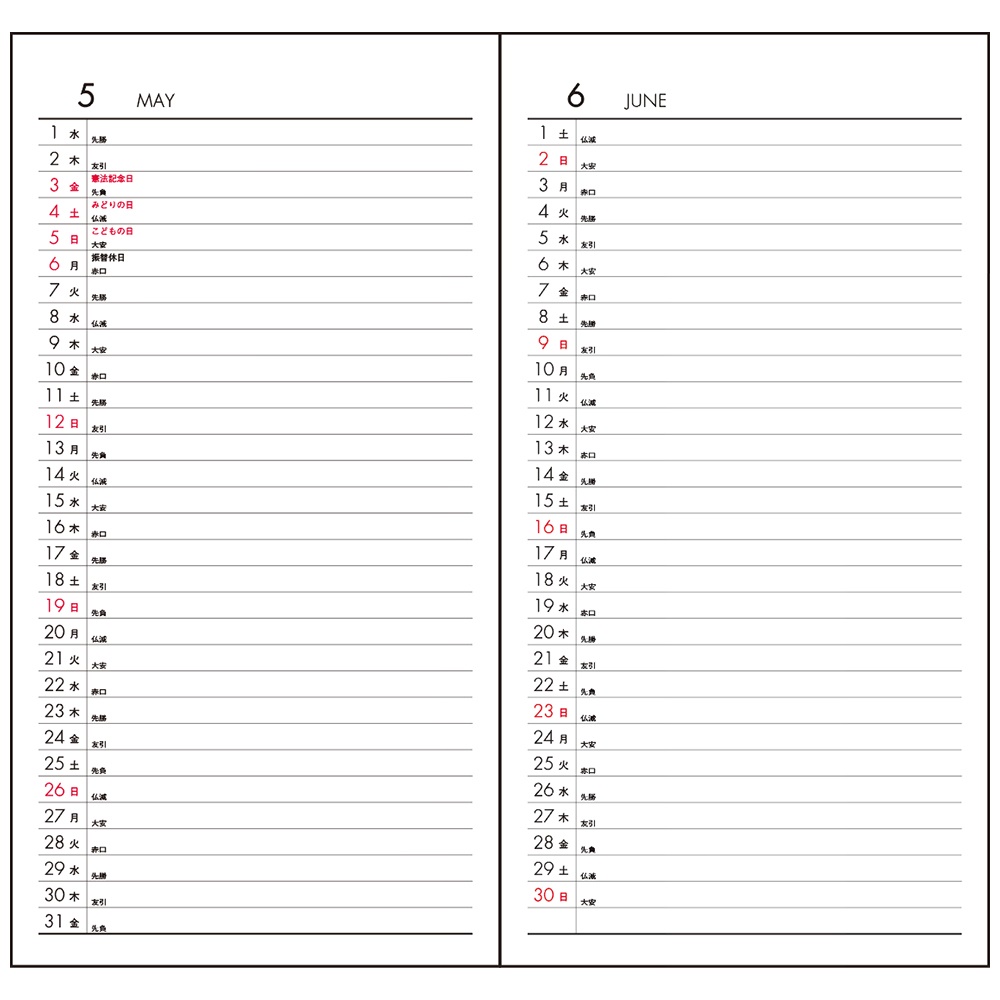 | 内容 | カレンダー、年間スケジュール、月間スケジュール(翌年4月まで)、週間スケジュール、ノート、アドレス、おぼえ |