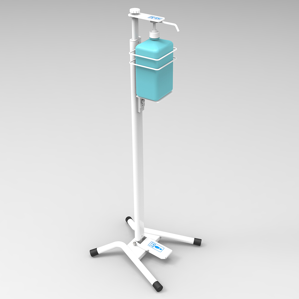 足元のペダルを踏んでポンプを噴射する仕様で、直接ボトルに触れることなく使用でき衛生的です。