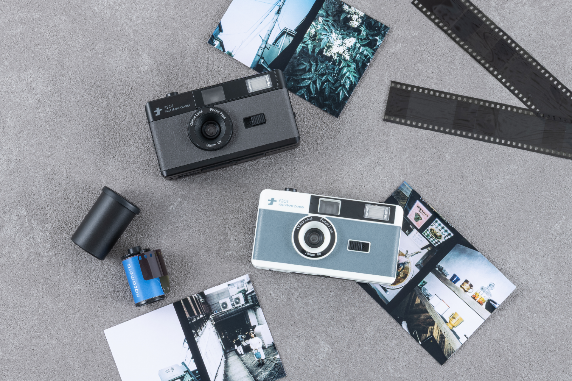 通常のフィルムの倍の枚数を撮影することができるハーフフレームカメラ。
