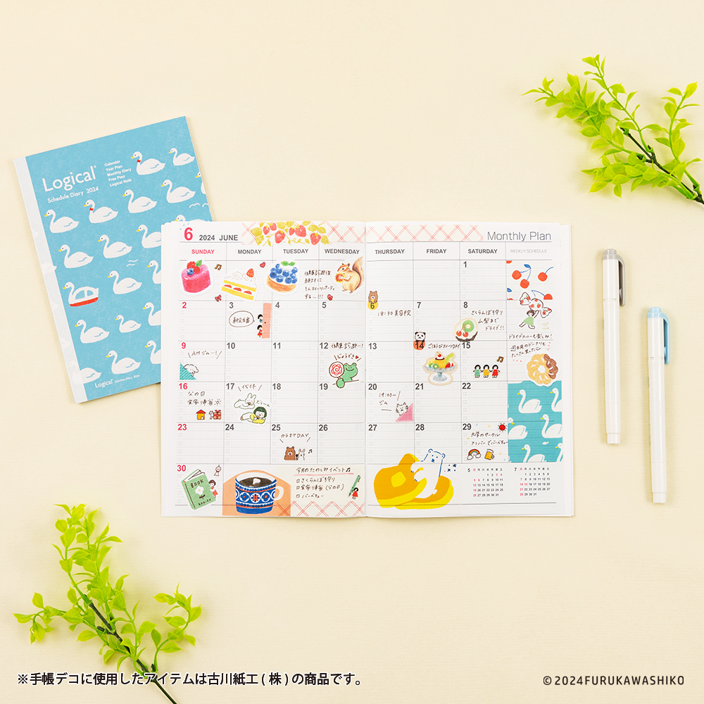 ロジカルノートタイプのスケジュール帳(月間ブロック)。古川紙工イラストデザインの新柄が登場。