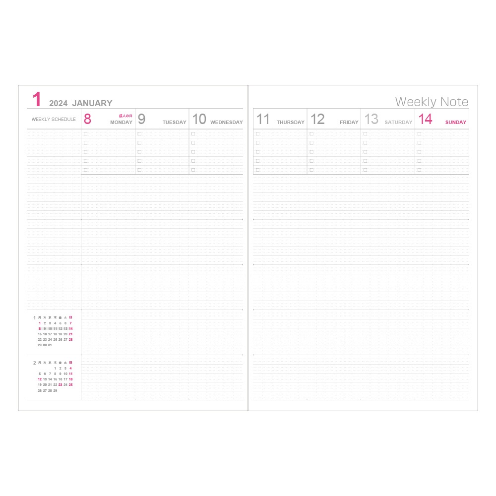 1週間の予定とノートを見開き1ページで完結!