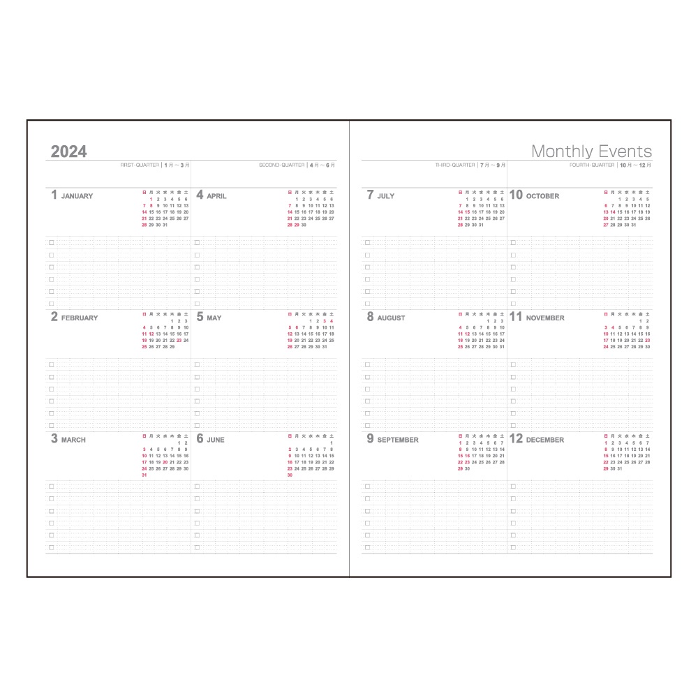 月間スケジュール(見開き1 ヶ月・ブロック式/日曜日始まり)+ノートページ充実(71ページ)