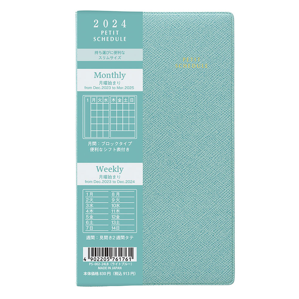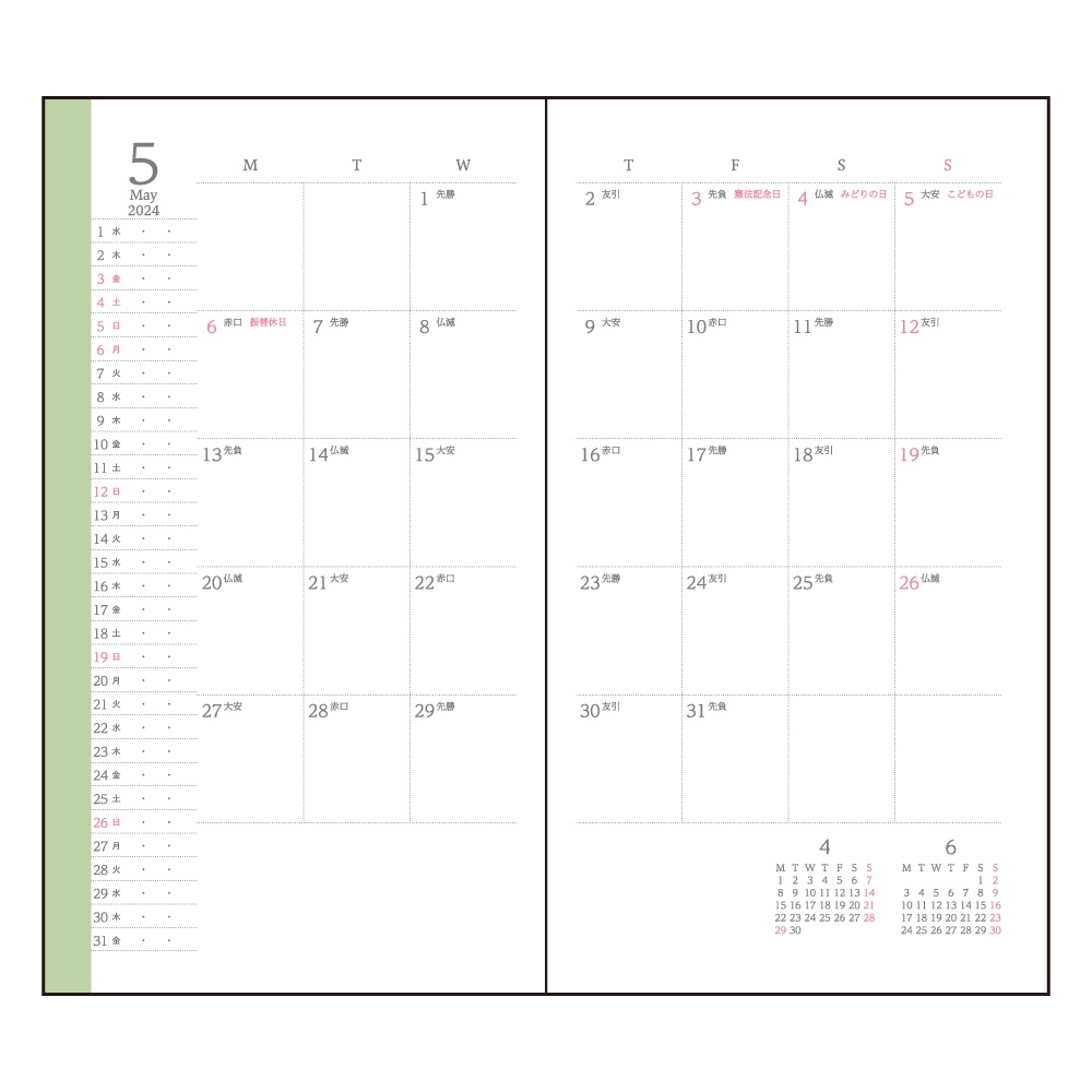 常に持ち歩きたくなるコンパクトなサイズ感の手帳。シフト表がマンスリーページにあるので便利。月曜始まり。