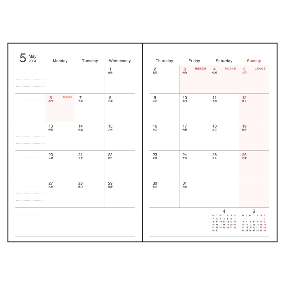 A6変形サイズ。本文はマンスリーとノートだけのシンプルな手帳です。