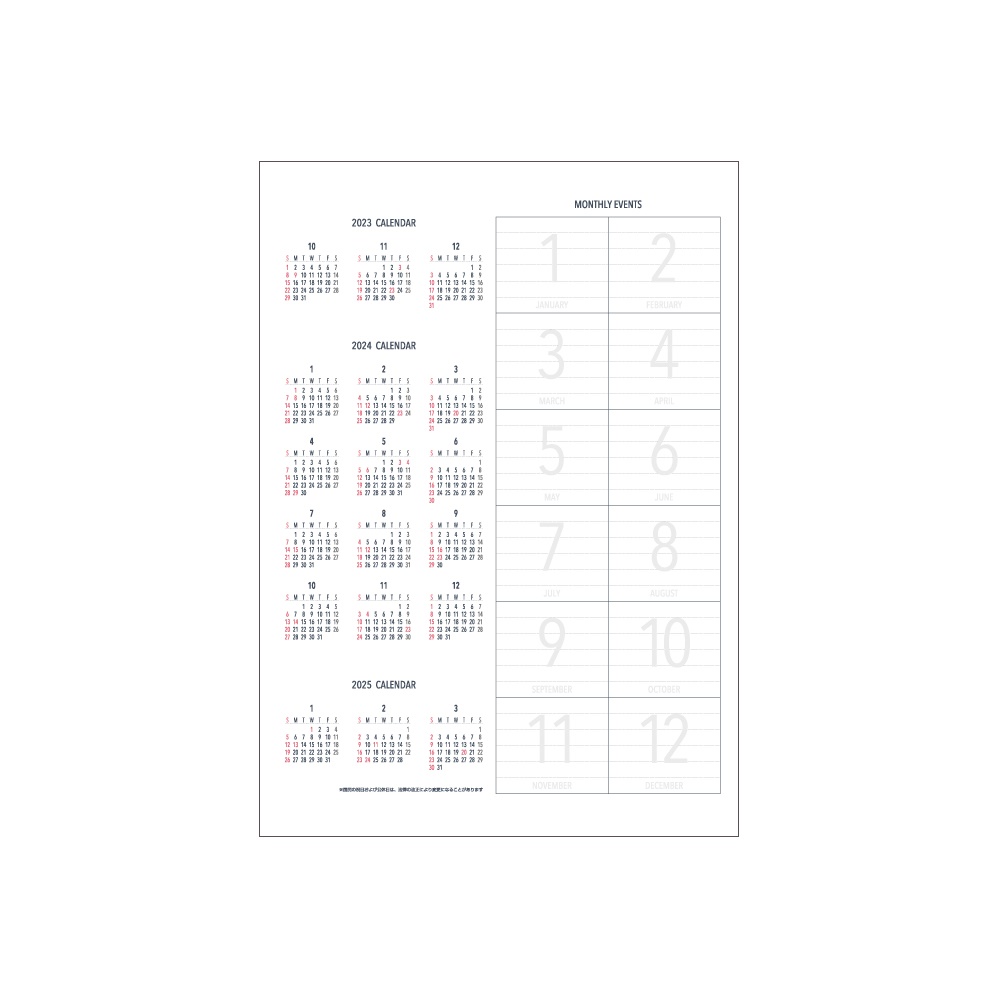 カレンダーとリンクさせるのに便利な日曜始まりタイプ。