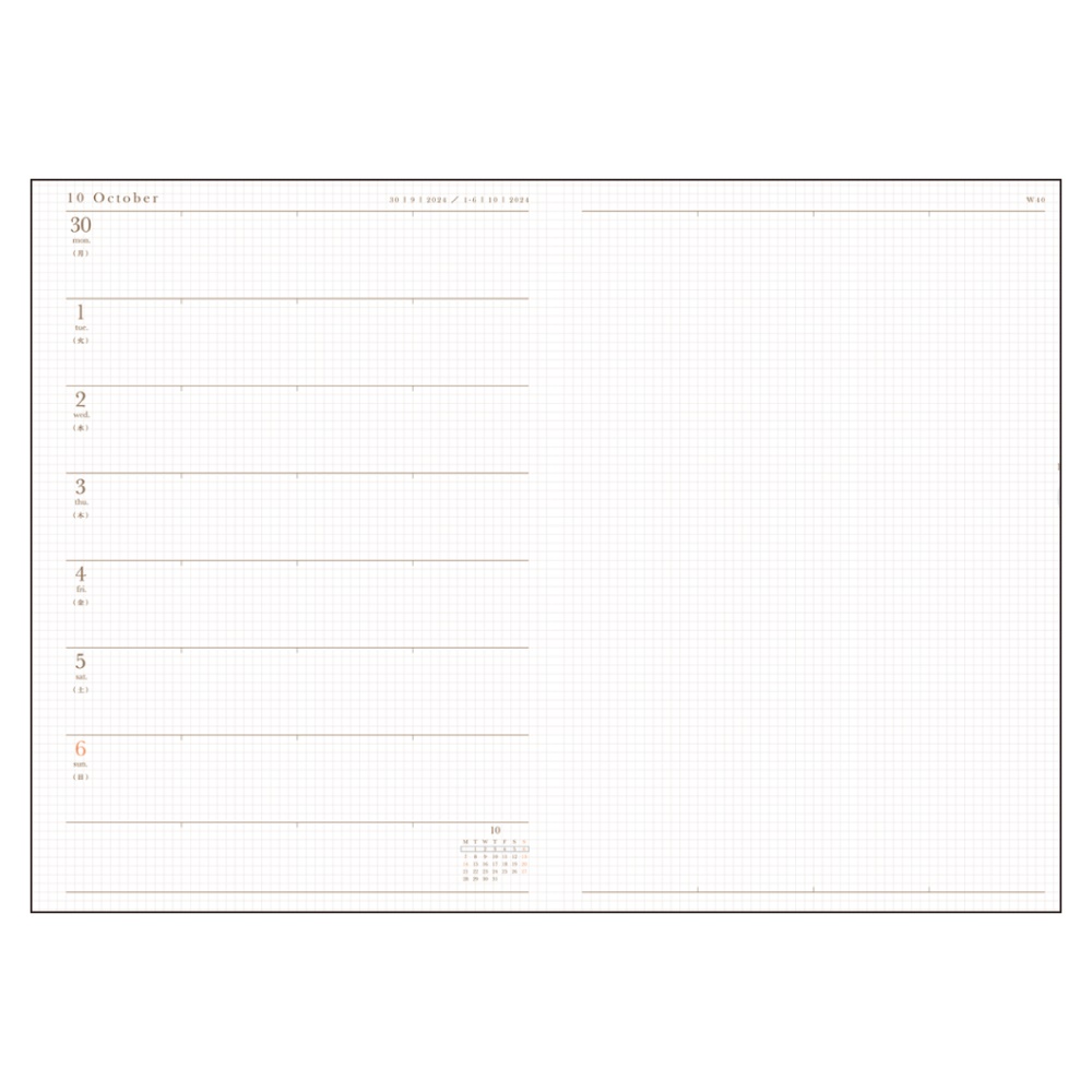 マンスリーとレフト式のウィークリーでたっぷり書ける、方眼罫を採用した手帳です。