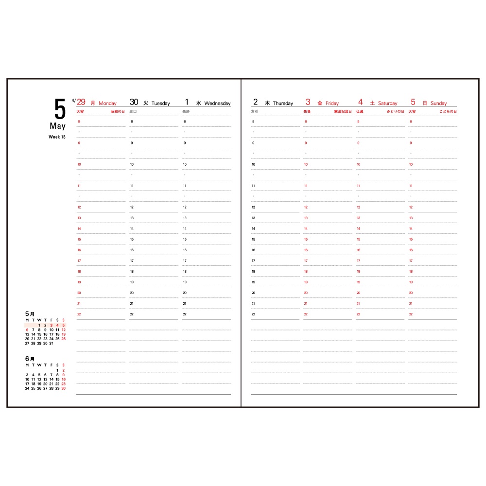 時間単位でスケジュールを管理。A5サイズのバーチカルタイプ
