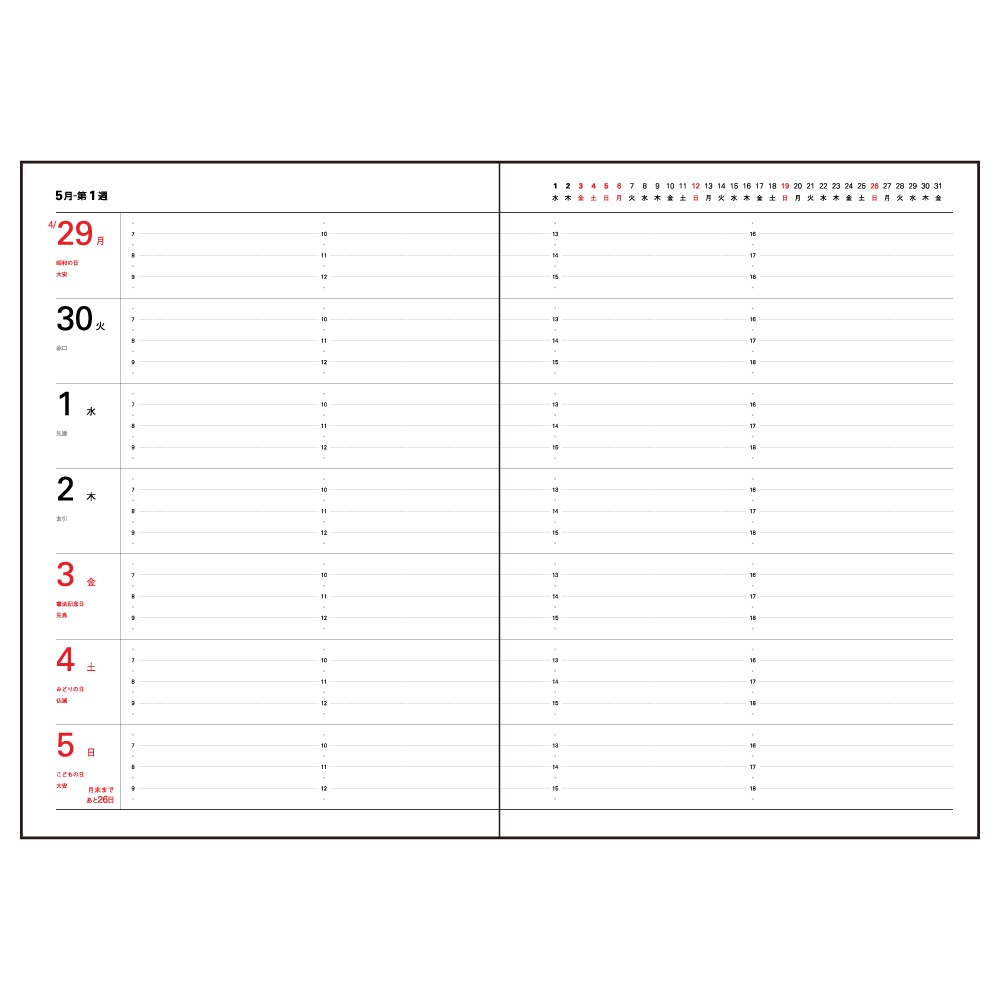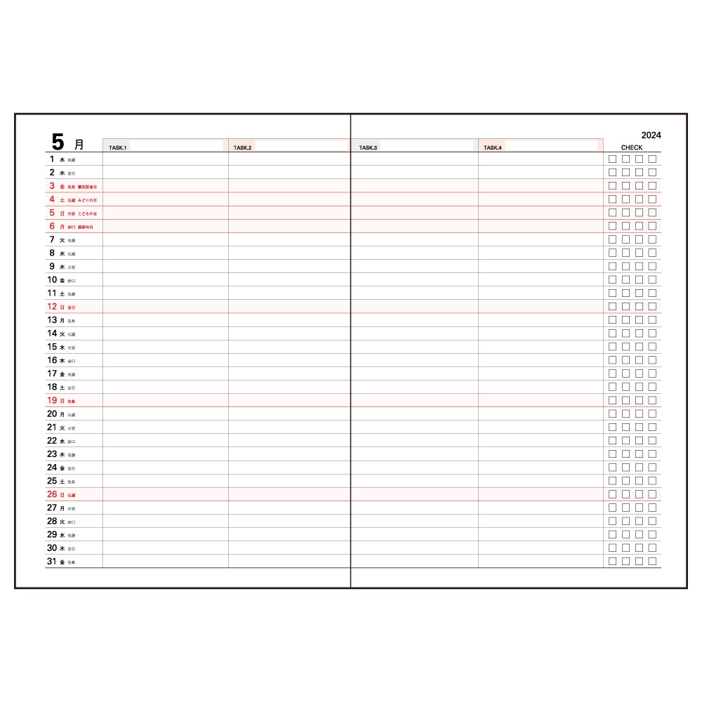 スケジュールをタスク毎に管理できるリスト式。週間には時間軸もあり便利。大きめB5サイズで書きやすさ抜群。