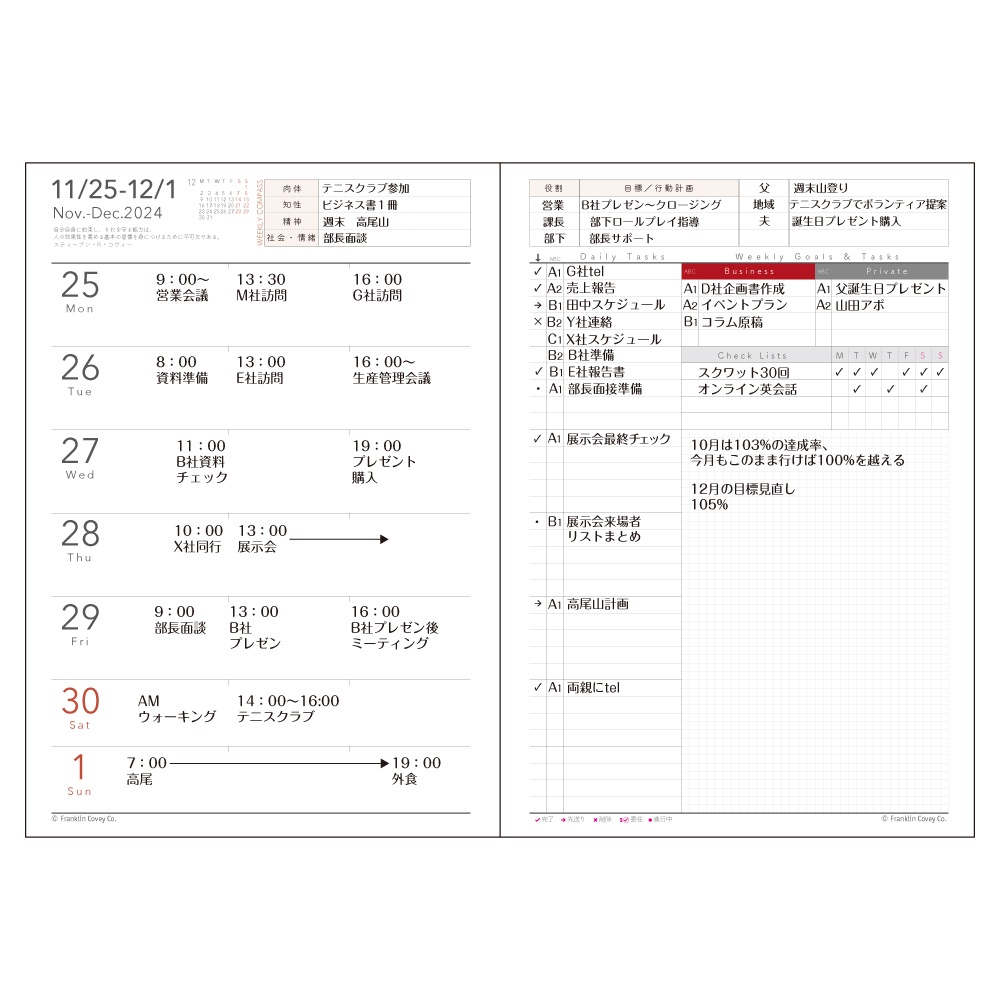 フランクリン・プランナーのウィークリー・レフトタイプのダイアリー