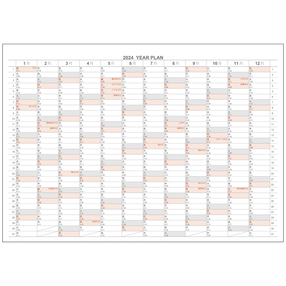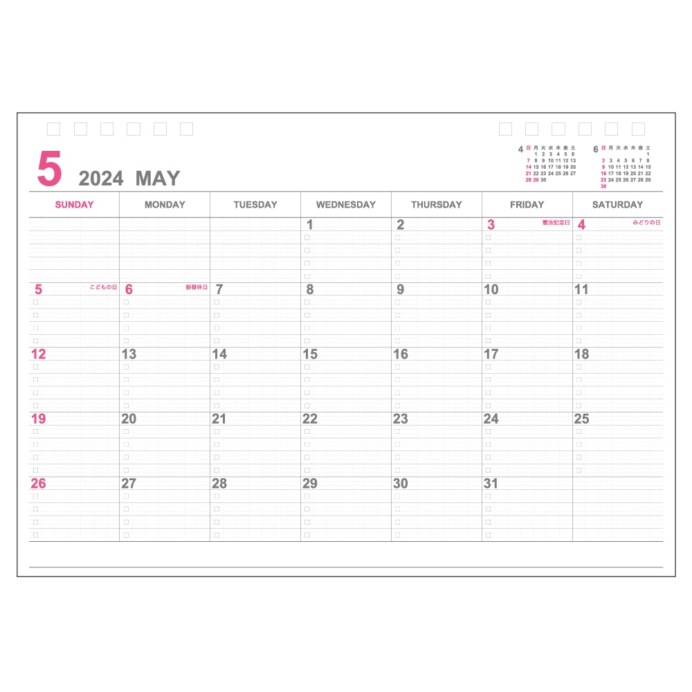 ●きれいに記入できて読みやすいロジカル罫を月間カレンダーに採用。日曜始まり。