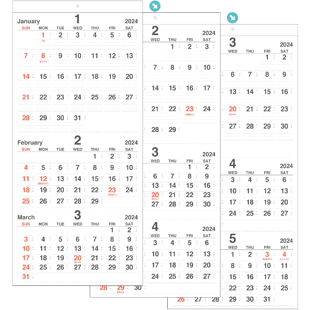 FSC-MX/壁掛けカレンダー 毎月めくる3か月