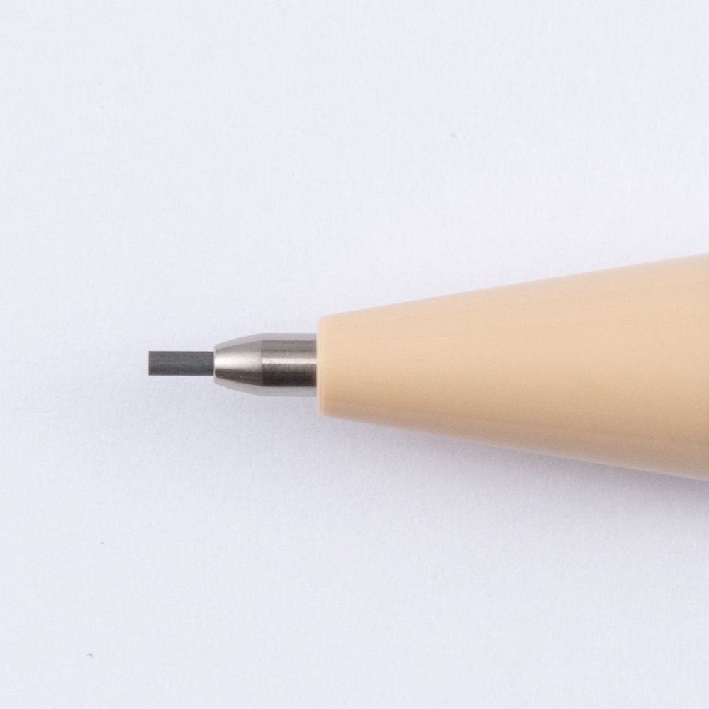 鉛筆のようなデザインのシャープペンシルです。鉛筆径 (7mm)に近づけた8mmの軸径を採用して握りやすさを実現しています。書きやすさに加え、どこか懐かしい使い心地を味わえます。定番の芯径0.5mmは全色、手帳などの細かな書き込みにも適した0.3mm、鉛筆に近い描き心地の0.9mmは2カラー(9、10)限定 でラインアップしています。