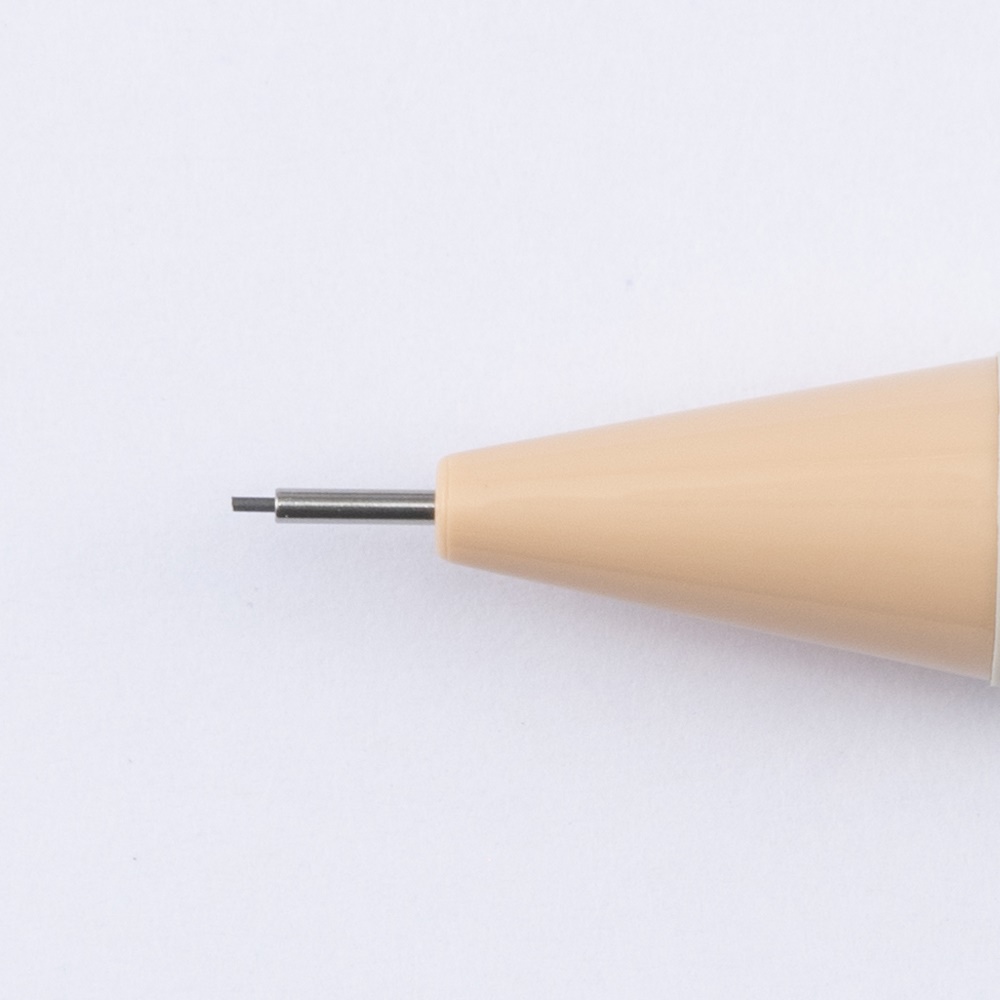 鉛筆のようなデザインのシャープペンシルです。鉛筆径 (7mm)に近づけた8mmの軸径を採用して握りやすさを実現しています。書きやすさに加え、どこか懐かしい使い心地を味わえます。定番の芯径0.5mmは全色、手帳などの細かな書き込みにも適した0.3mm、鉛筆に近い描き心地の0.9mmは2カラー(9、10)限定 でラインアップしています。